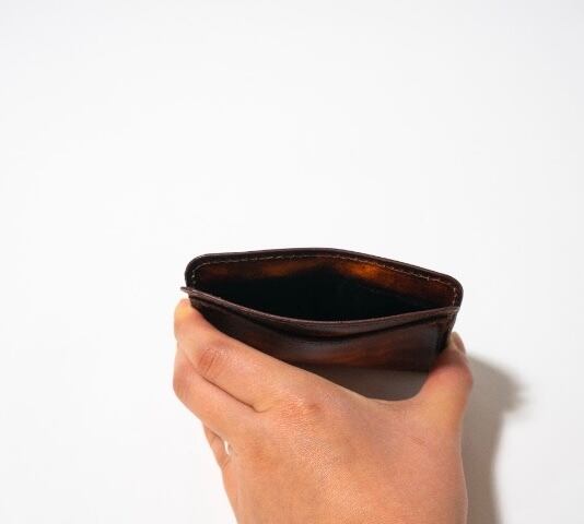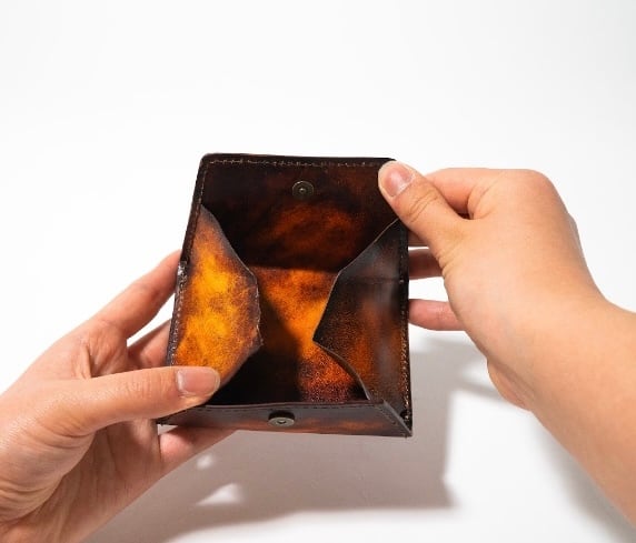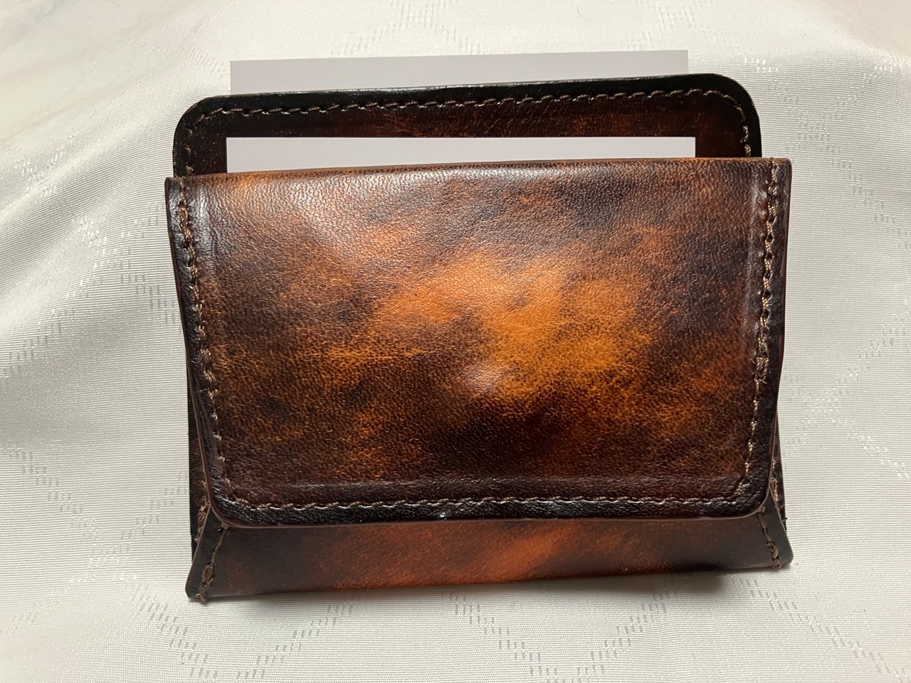 革工房Rickiey[リッキー]独自のぼかし染めを手作業でひとつひとつ丁寧に染色した牛革を使用した「ミニ財布」です。