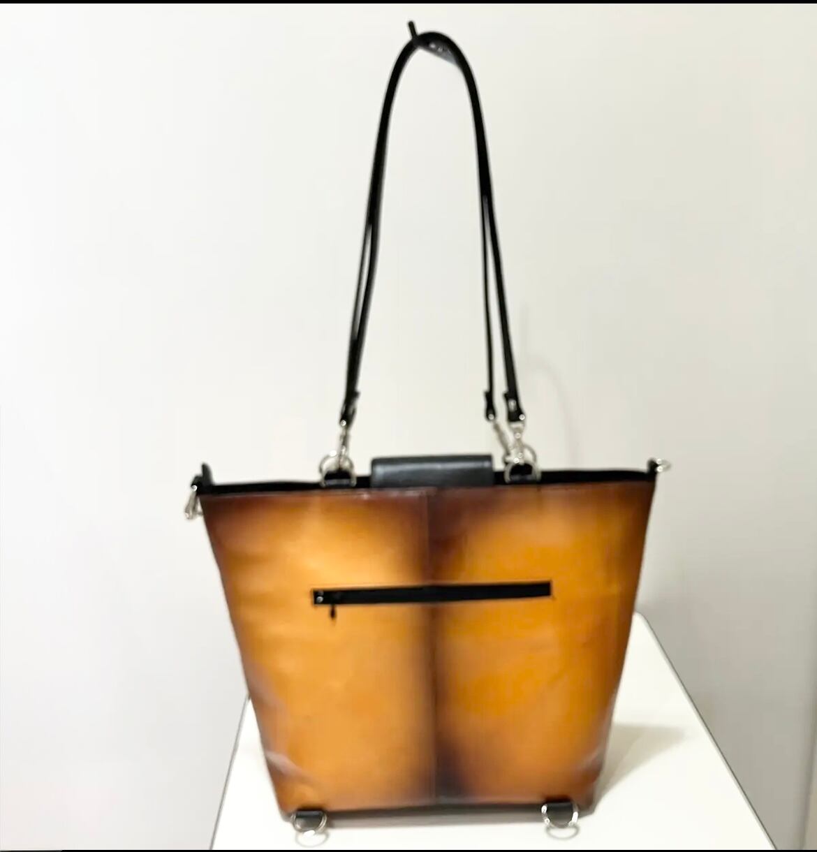 2WAYトートバッグ4WAYにも‼️(キャメル・片面文字入)【 世界に1つだけ‼︎ 本革・手染め・男女兼用 ・大阪産】
