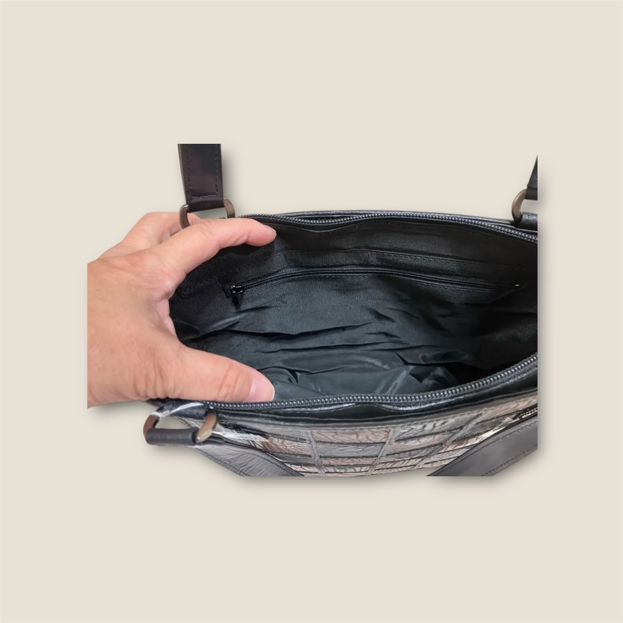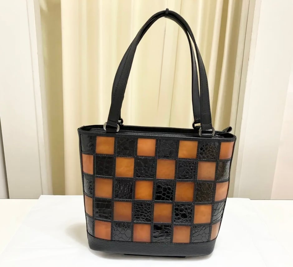とっても珍しい「クロコと牛革のハーフ」のおしゃれで高級感のあるトートバックです‼️