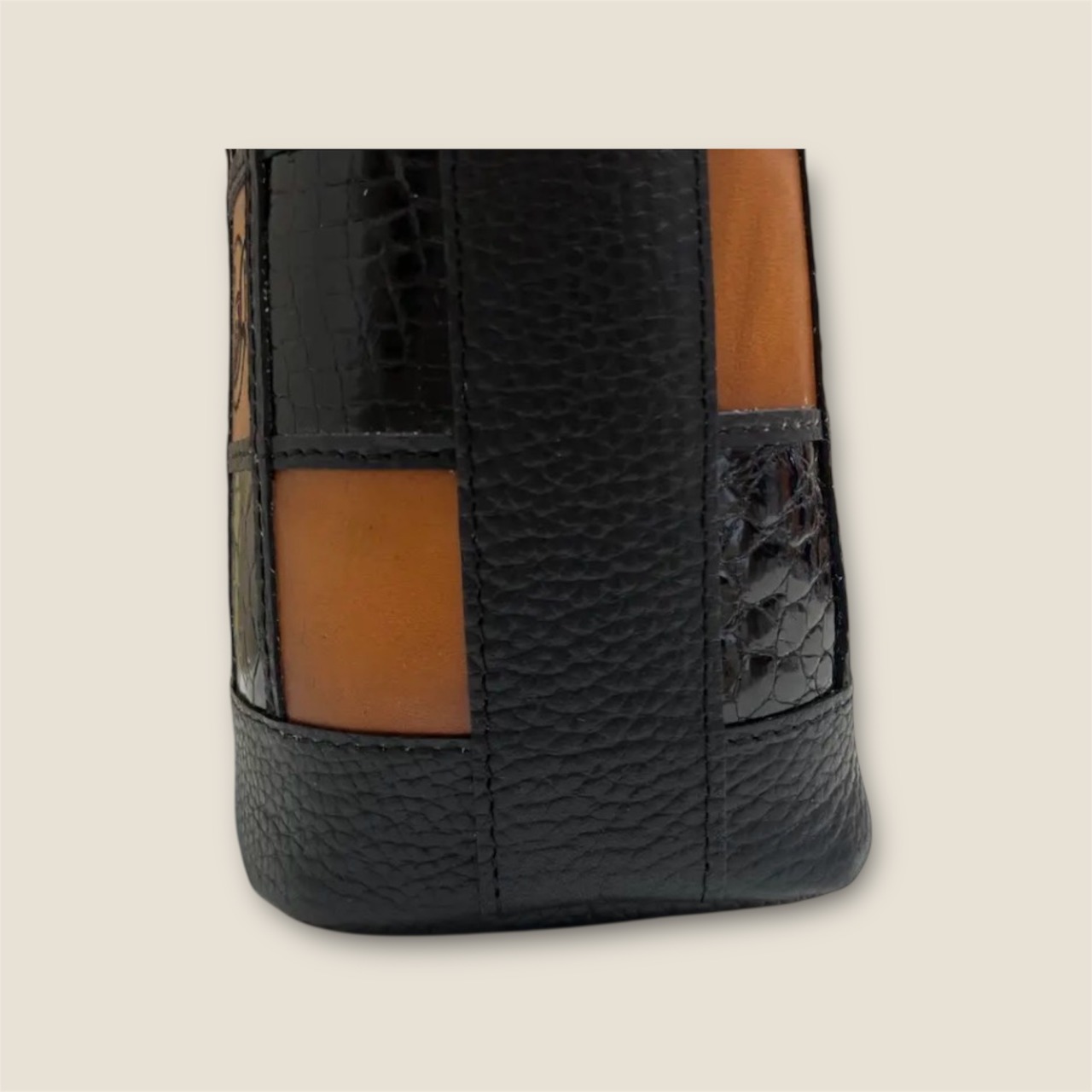 革工房Rickiey[リッキー]独自の染めを手作業でひとつひとつ丁寧に染色した牛革を使用した「カラフル”増す”筒型トートバッグ (クロコ&牛)」です。