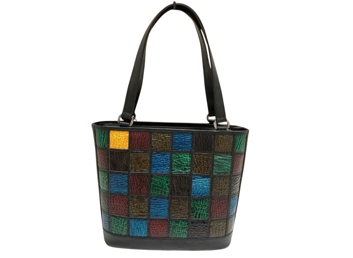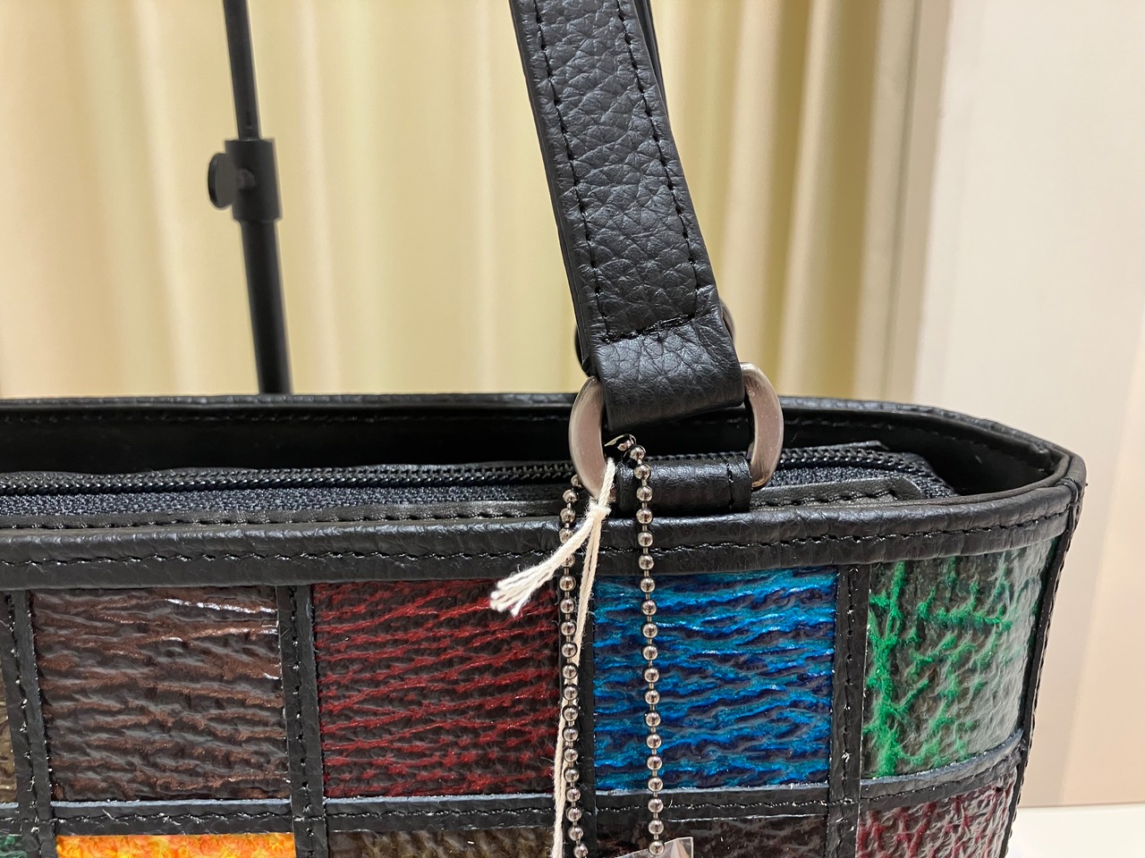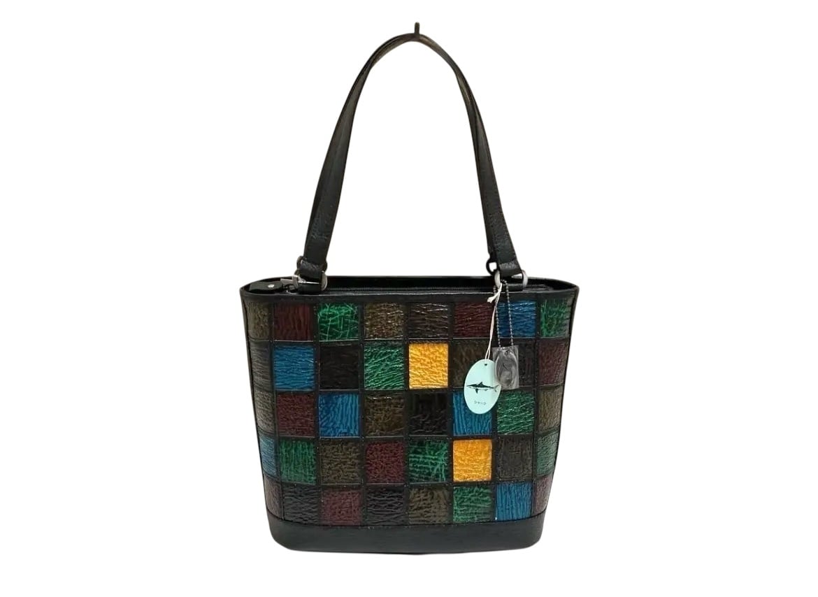革工房Rickiey[リッキー]独自の染めを手作業でひとつひとつ丁寧に染色した牛革を使用した「カラフル”増す”筒型トートバッグ (ランダム・サメ)」です。