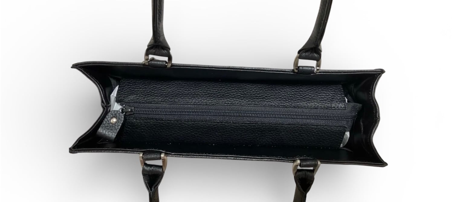 中身が見えないようにバッグの内側上部にファスナーを付けました。