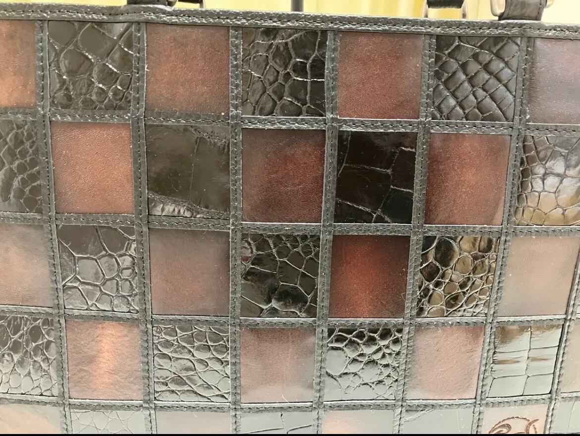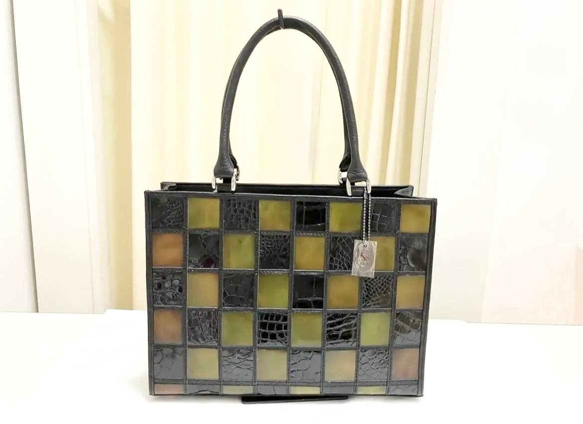 「クロコと牛革」のオシャレで高級感のあるトートバックです‼️