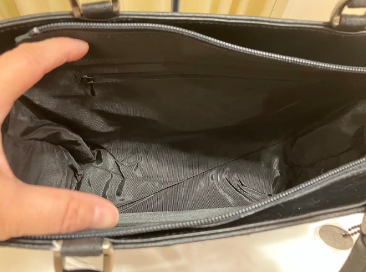 中身が見えないようにバッグの内側上部にファスナーを付けました。