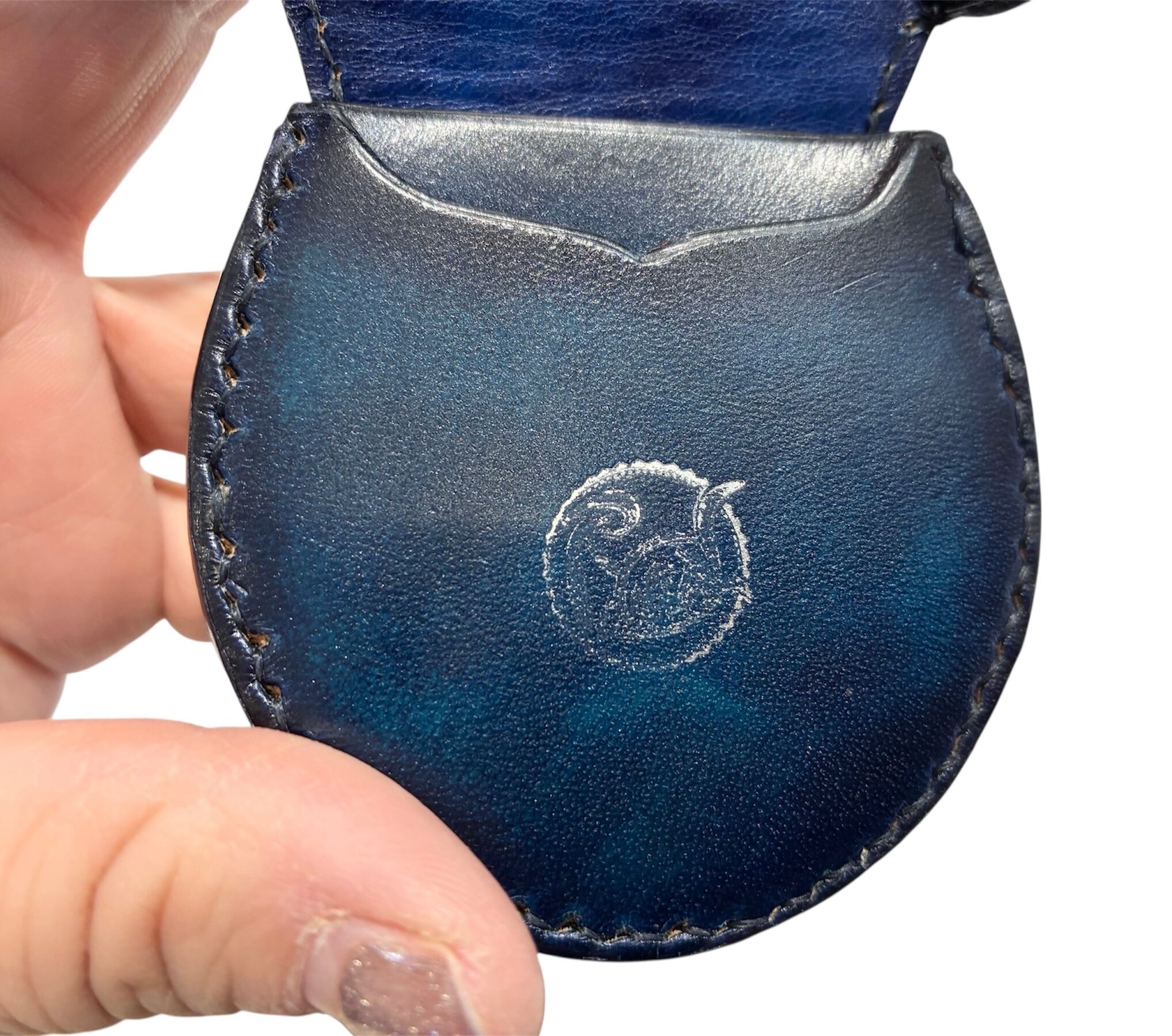 革工房Rickiey[リッキー]独自のぼかし染めを手作業でひとつひとつ丁寧に染色した牛革を使用した「馬蹄型コインケース」です。