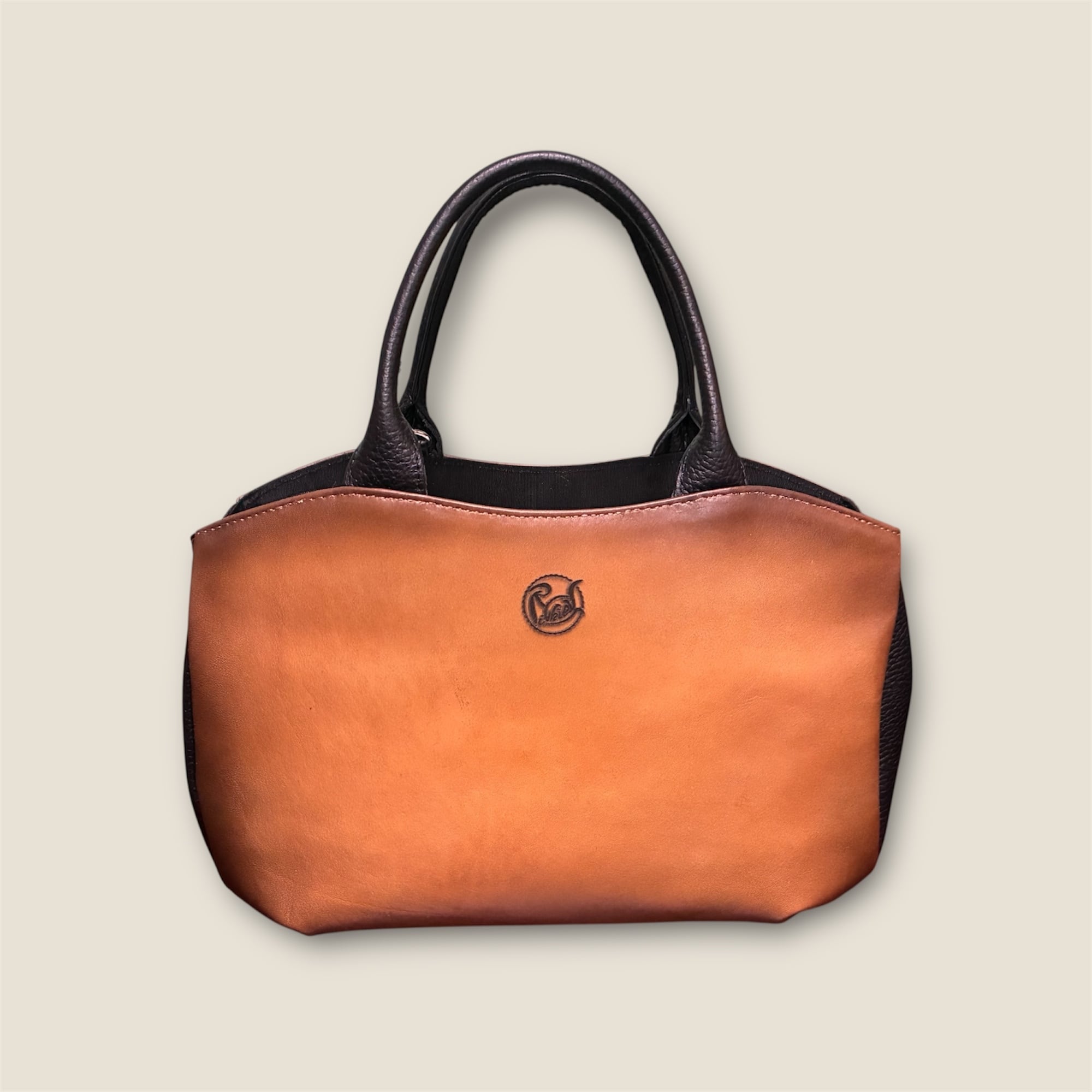 丸型トートバッグ(キャメルぼかし染め)ショルダーバッグにも‼️【 世界に1つだけ‼︎ 本革・手染め・男女兼用 ・大阪産】 | 革工房Rickiey(リッキー) 手染めレザーアイテム ウォレット・スマホケース販売