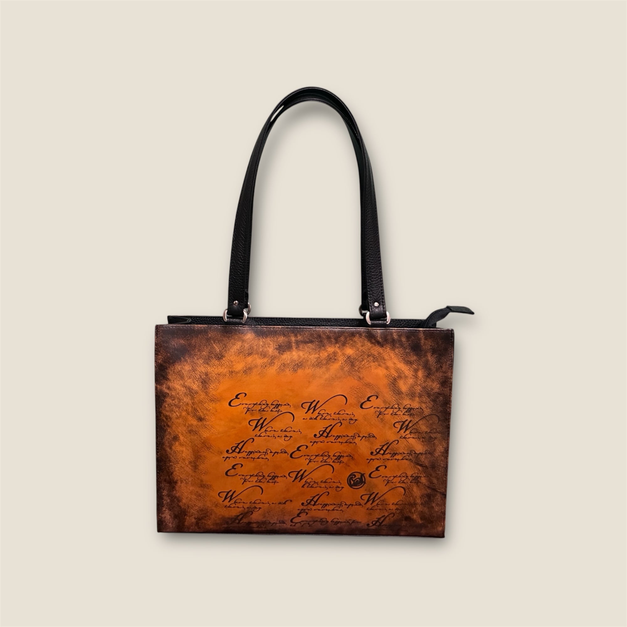 ぼかし染めトートバッグ文字入り(B4・キャメル)【 世界に1つだけ‼︎ 本革・手染め・男女兼用 ・大阪産】