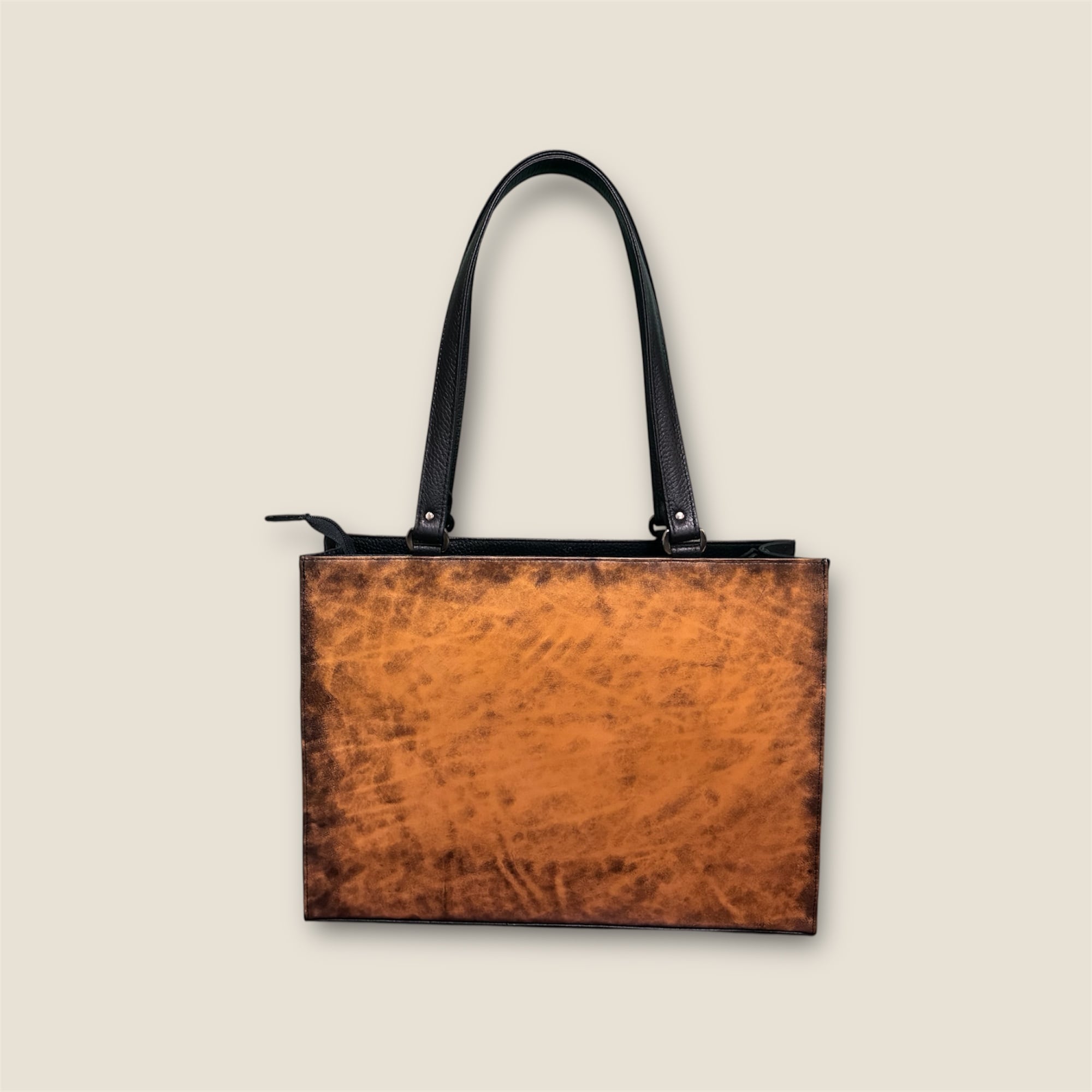 革工房Rickiey[リッキー]独自の染めを手作業でひとつひとつ丁寧に染色した牛革を使用した「まだら染めトートバッグ文字入り(B4)」です。