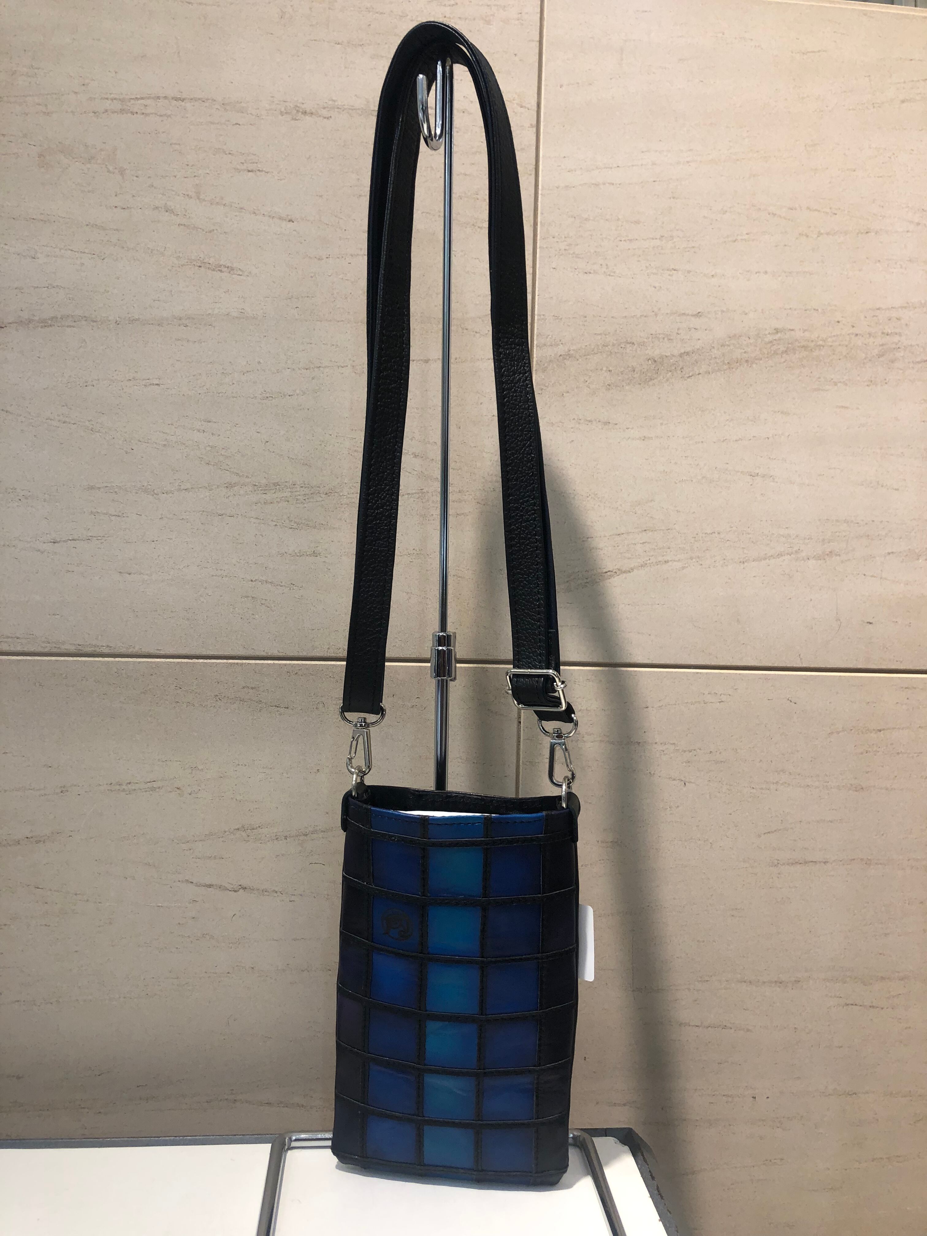 革工房Rickiey[リッキー]独自のぼかし染めを手作業で施した「牛革」を使用しました。 カラフル”増す”スマホポーチです。カラフルマスを3色配置したデザインとま16500なります。色合いは写真の通りで既に作ったものとなります。