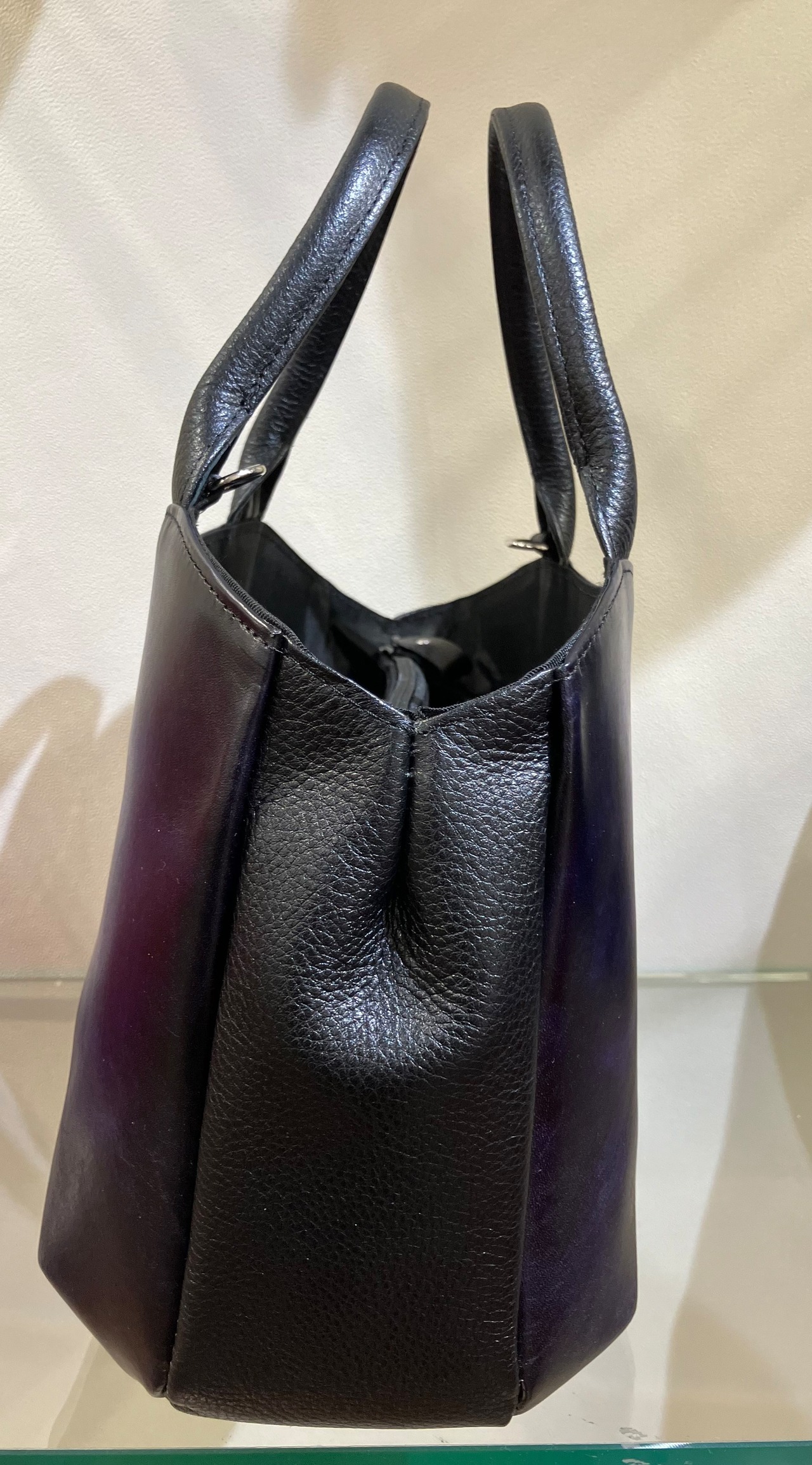 革工房Rickiey[リッキー]独自の染めを手作業でひとつひとつ丁寧に染色した牛革を使用「2WAY丸型トートバッグ(横長)」です。