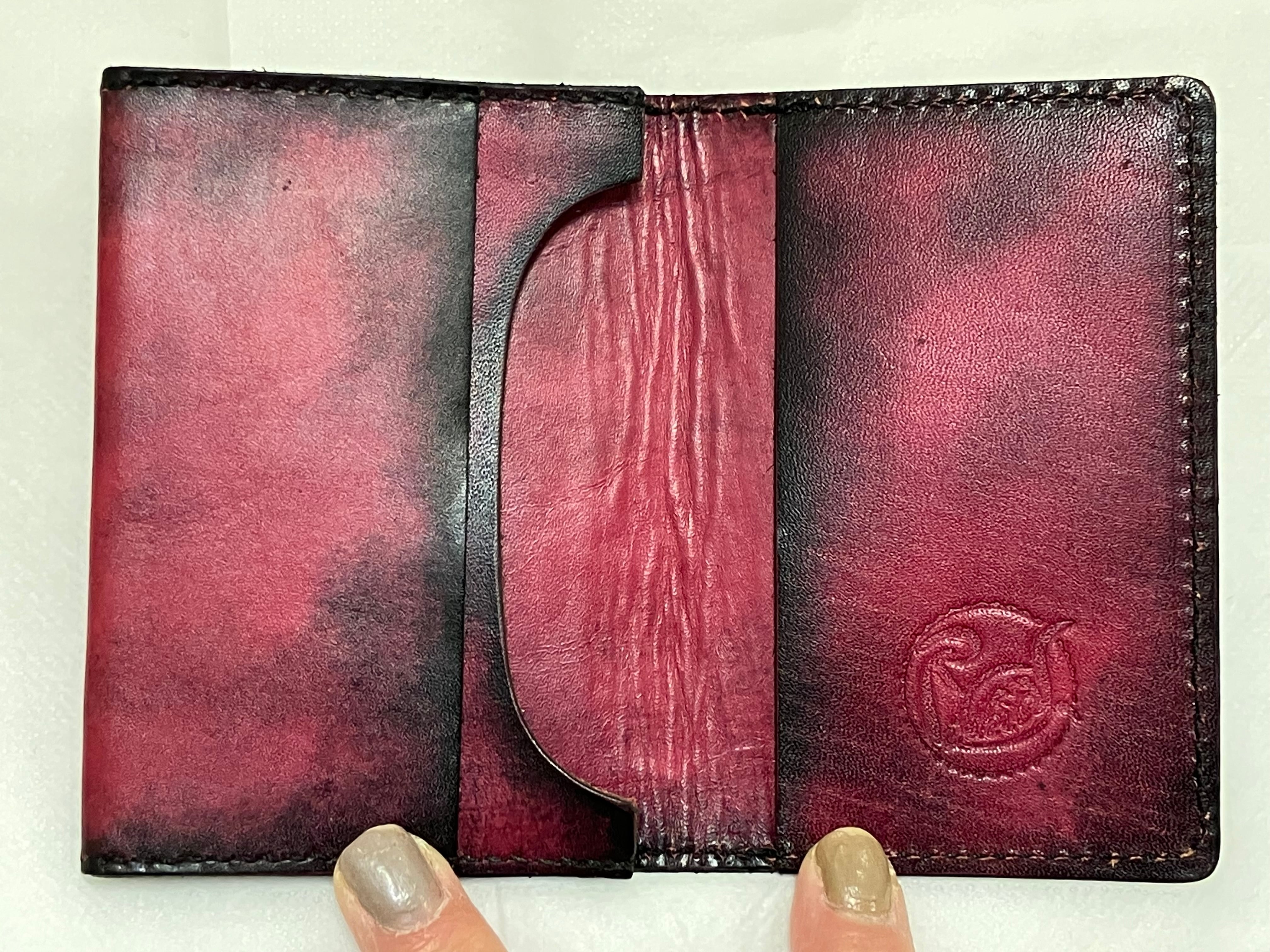 革工房Rickiey[リッキー]独自のぼかし染めを手作業でひとつひとつ丁寧に染色した牛革を使用した「名刺入れ」です。